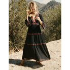 Tato dlouhá černá šaty nabízejí plynulý střih a lichotivý výstřih do V. Ideální pro různé akce, spojují pohodlí a styl.