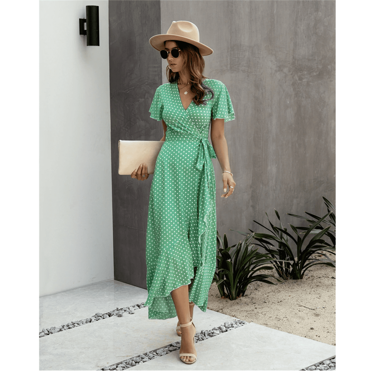 Tato dlouhá bohémská šaty okouzlují svou volnou siluetou a uvolněnou elegancí. Je univerzální a pohodlná, nosí se jak na každodenní použití, tak při zvláštních příležitostech. Její přirozený styl přechází sezónami s šarmem.
