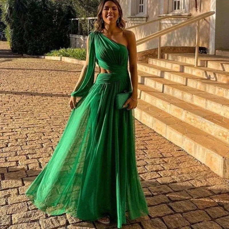 Wafa | Maxi plisé šaty s asymetrickým ramínkem – elegance a modernita