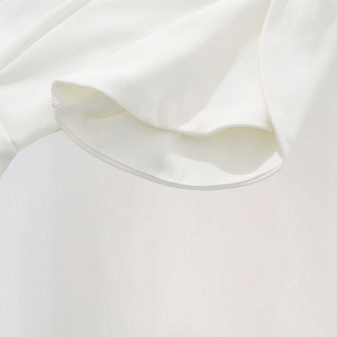 Tato mini šaty mají lichotivý střih a krátké volánkové rukávy. Strukturovaný vysoký límec dodává moderní a rafinovaný vzhled.