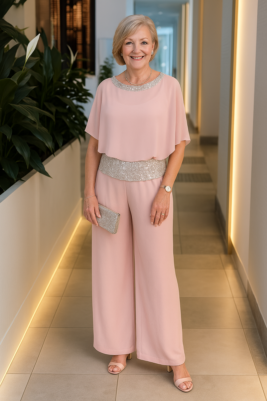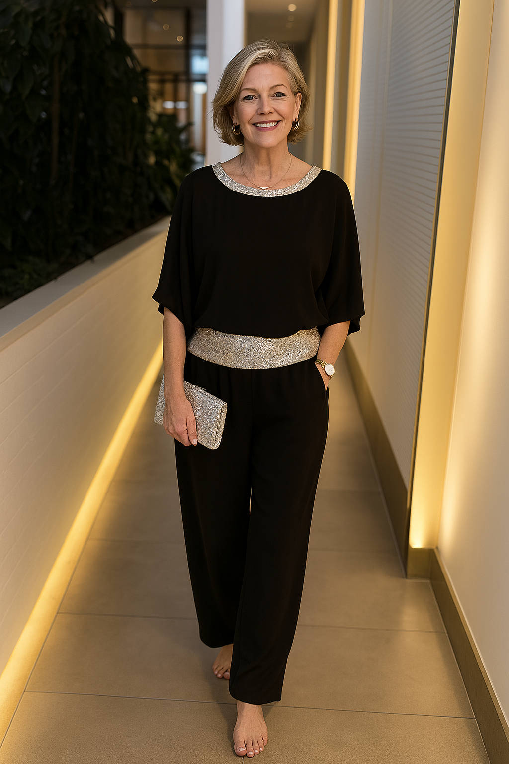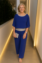 Tento elegantní dámský set spojuje eleganci a všestrannost pro každodenní nošení. Skládá se z elegantně padnoucích volných kalhot a blůzy s pečlivě zpracovanými detaily. Ideální pro formální příležitosti i pro neformální výlety.