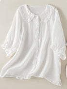 Tato košile na knoflíky odhaluje plynulou a ženskou siluetu. Její límec zdobený volány dodává jemný a romantický nádech. Její pohodlný střih z ní dělá ideální volbu pro elegantní každodenní styl.