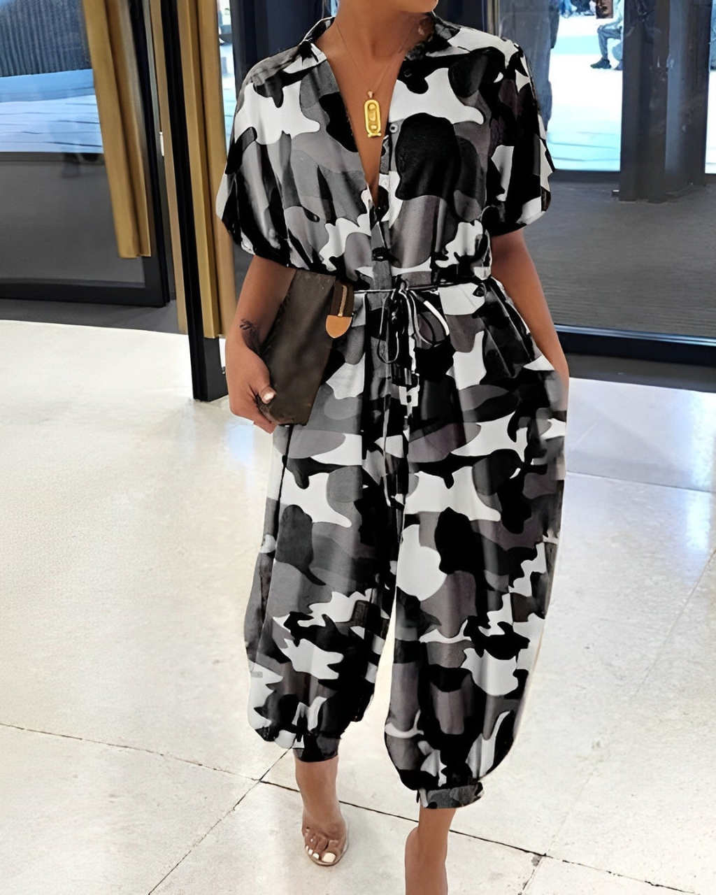 Denne bælte-kombination tilbyder en moderne stil og en komfortabel pasform. Dens knapdesign og smalle ben tilføjer et trendy præg, ideelt til dine udgange eller afslappede dage.