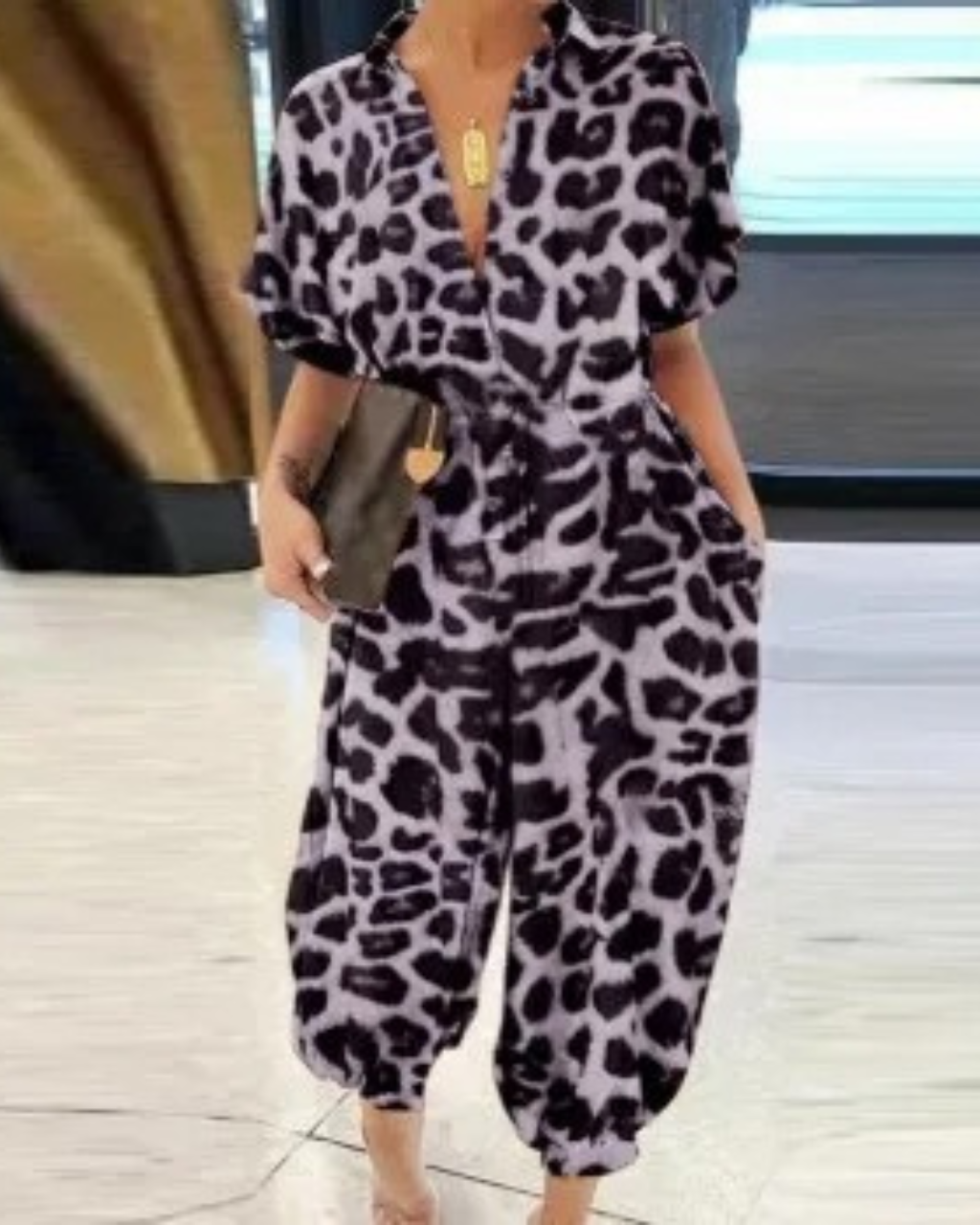 • Korte ærmer og åben krave for en luftig stil.