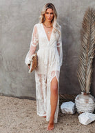Dieses elegante lange Kleid verführt mit seinen langen Ärmeln und dem fließenden Schnitt. Ideal für alle Jahreszeiten, kombiniert es Komfort und Raffinesse und passt sowohl zu lässigen Anlässen als auch zu festlicheren Momenten.