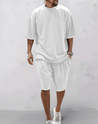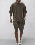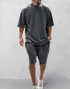 Αυτό το σετ που αποτελείται από ένα oversized t-shirt και ένα αντίστοιχο σορτς σας εξασφαλίζει μια κομψή εμφάνιση χωρίς κόπο. Σχεδιασμένο από μαλακό και αναπνεύσιμο ύφασμα, προσφέρει ιδανική ελευθερία κινήσεων για το καλοκαίρι. Ιδανικό για τις βόλτες σας στην πόλη, τα ταξίδια ή τις χαλαρές σας μέρες.
