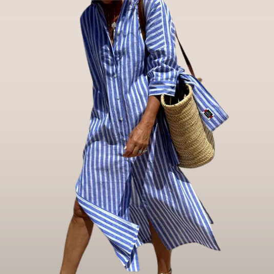 Ζίνα | Ριγέ Φόρεμα-Πουκάμισο Άνετο και Ελαφρύ