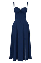 Αυτή η ημίμακρη φόρεμα συνδυάζει ένα προσαρμοσμένο κορσέ με μια ρευστή φούστα για μια αρμονική και θηλυκή σιλουέτα. Σχεδιασμένη για να αναδεικνύει τις καμπύλες σας ενώ διασφαλίζει άριστη άνεση, προσαρμόζεται εξίσου σε επίσημες εκδηλώσεις και κομψές εξόδους. Μια τέλεια ισορροπία μεταξύ μοντέρνας και εκλεπτυσμένης αισθητικής.
