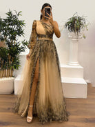 Adeline | Vestido Largo Impreso Con Flores En Tul Con Abertura – Elegancia Y Refinamiento