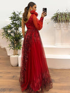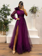 Este vestido largo presenta un diseño floral único. Su diseño de un solo hombro y su abertura lateral añaden un toque de elegancia.