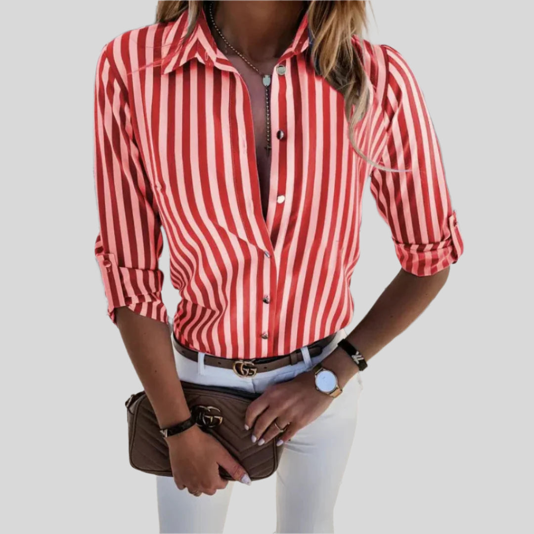 Esta camisa de mangas largas presenta un diseño a rayas atemporal. Disponible en varios colores, se adapta a todas las ocasiones veraniegas. Su tejido ligero asegura una comodidad óptima durante todo el día.