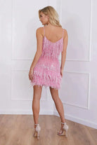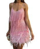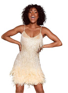 קלריס | שמלת מיני זוהרת עם ציצים ונוצות