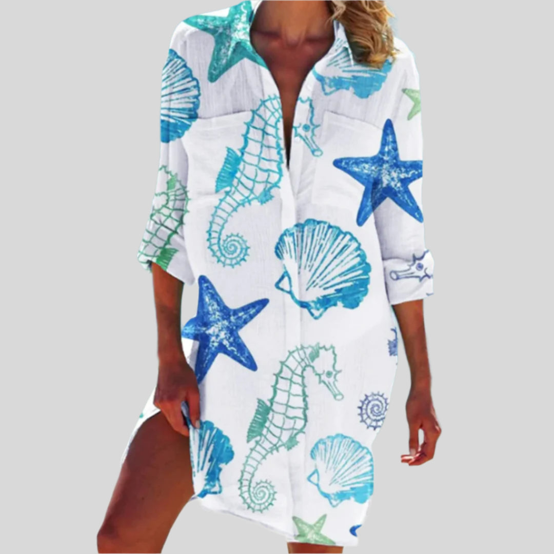 אוליביה | שמלת כפתורים קיץ עם שרוולים ארוכים