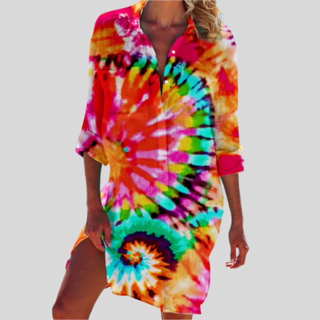 שמלת הקיץ המנופצת עם שרוולים ארוכים מציעה גזרה נוזלית ונוחה. העיצוב הרב-תכליתי שלה מתאים להזדמנויות שונות. זמינה במספר צבעים וגדלים כדי להתאים לכולם.