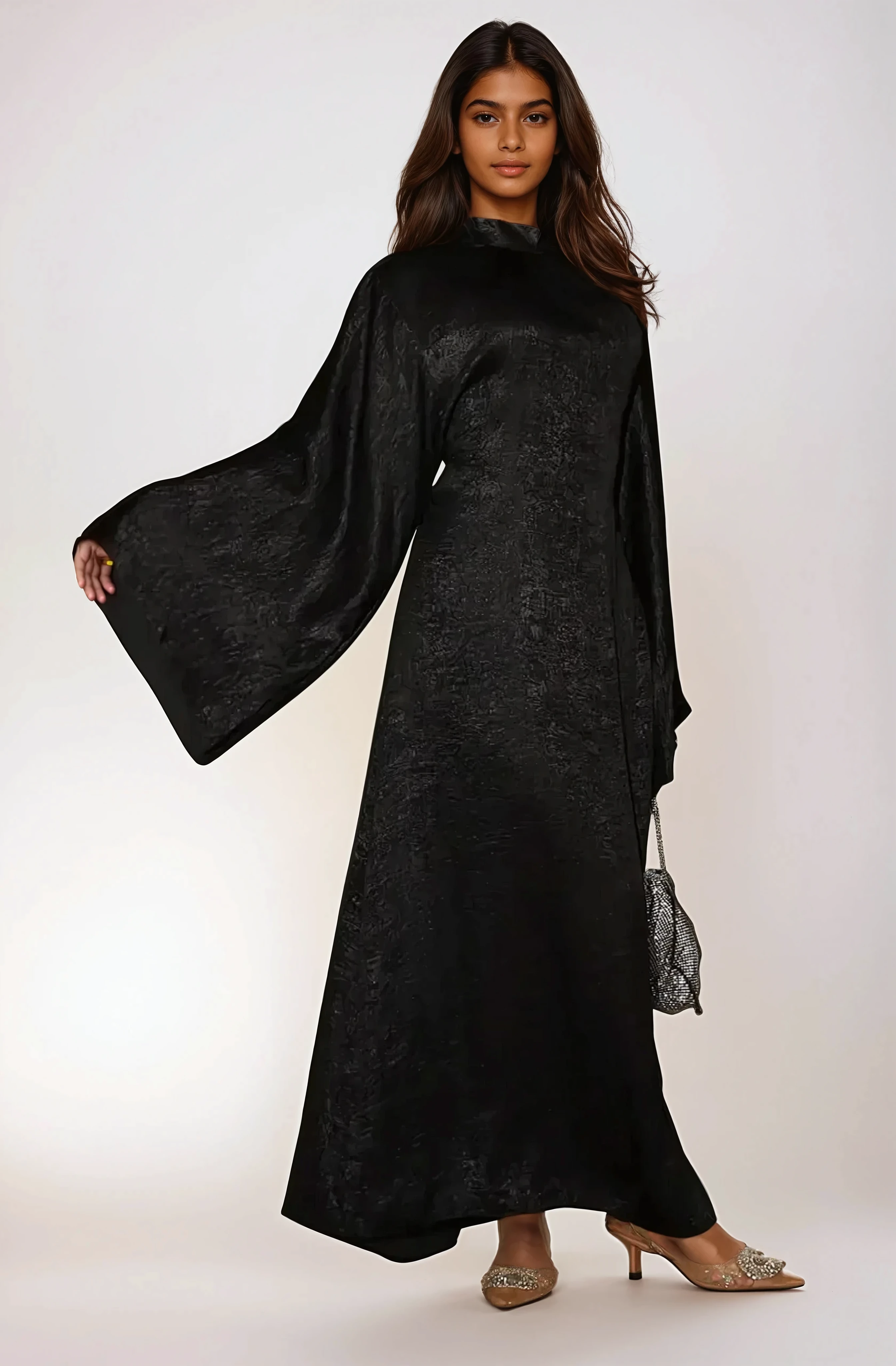תנו לעצמכם להיסחף על ידי שמלת אבאיה השחורה עם הקסם הדיסקרטי והמעודן. החיתוך הארוך והזורם שלה מהדק את כל הסילואטים, בעוד שהגוון השחור הנצחי שלה הופך אותה לפריט מפתח הן לאירועים פורמליים והן ליציאות יומיומיות.
