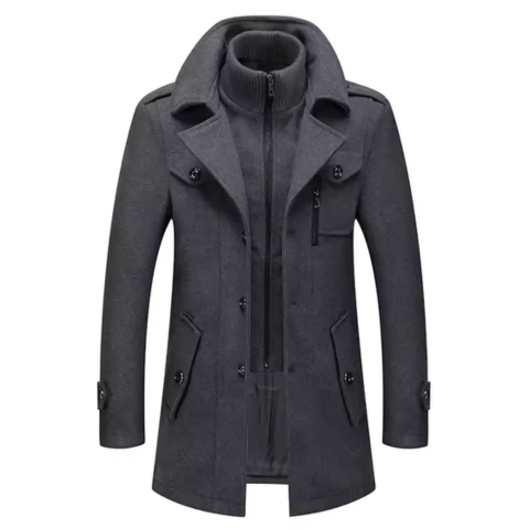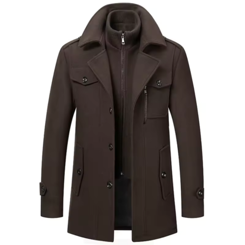 Sebastien | Kétrétegű Férfi Kabát — Két Cipzár és Elülső Gombok