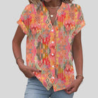 Ez a elegáns blúz élénk bohém mintával rendelkezik. Bő szabása és V-nyaka maximális kényelmet biztosít. Tökéletes különböző alkalmakra, könnyen kombinálható különböző alsókkal.