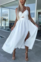 Questo vestito midi valorizza la silhouette con la sua vestibilità aderente e il suo scollo raffinato. Disponibile in diversi colori, è adatto sia per occasioni speciali che per momenti quotidiani. Il suo tessuto di qualità garantisce comfort e durata rimanendo facile da mantenere.
