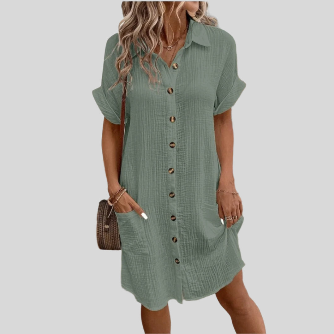 オリビア | ボタン付きの夏用ロングスリーブドレス