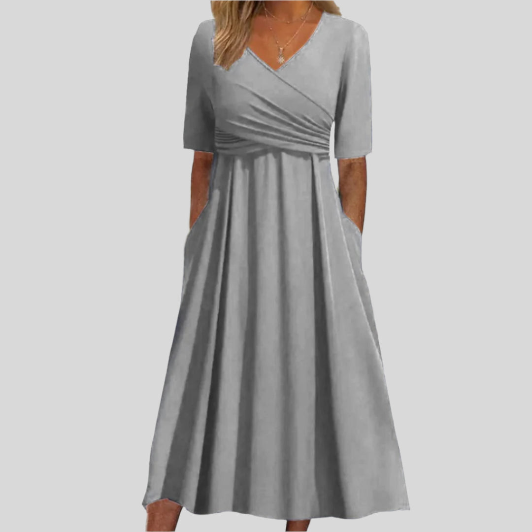 ラニア | ラグジュアリーなVネックロングスリーブドレス
