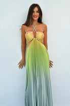 イダ | プリーツロングドレス – アメリカンネックとエレガンス