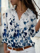 Claire | Chic Bluse – Blå Trykk Og Luftig Silhuett