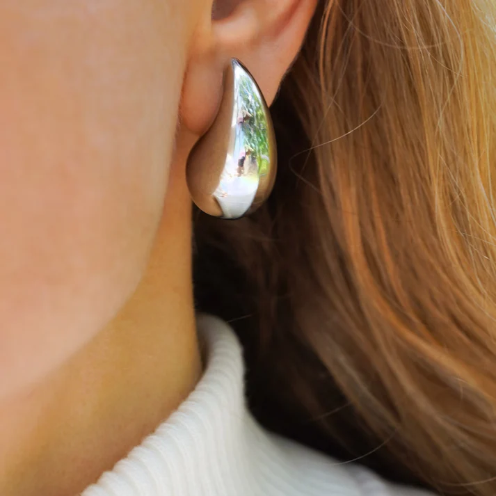 Elegante og rene, disse dråpeformede øredobbene gir et sofistikert preg til ditt utseende. Deres minimalistiske design passer til alle anledninger, fra hverdagsbruk til festlige anledninger. Lettere og komfortable, de kan bæres med letthet hele dagen.