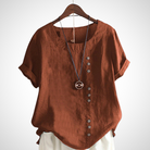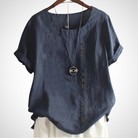 Denne blusen kombinerer eleganse og komfort for dine sommerdager. Dens håndlagde design garanterer enestående kvalitet og oppmerksomhet på detaljer. Tilgjengelig i flere farger, tilpasser den seg alle stiler.