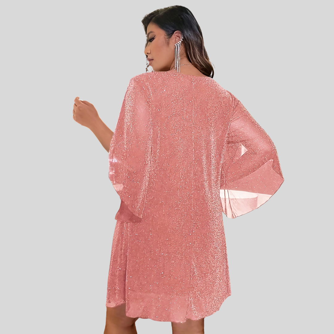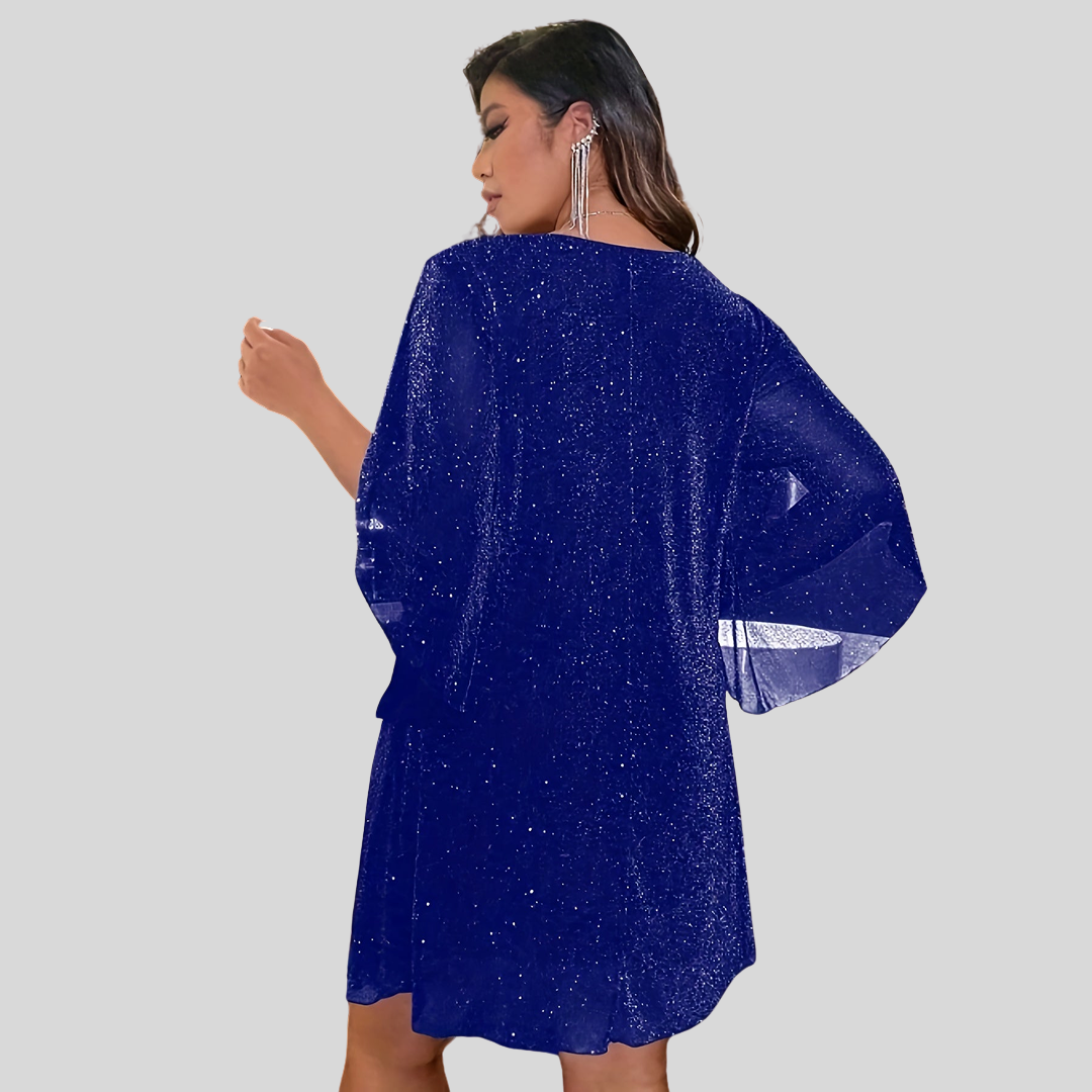 Denne glitrende korte kjolen er perfekt for dine kvelder. Den V-formede utringningen fremhever silhuetten din. Tilgjengelig i flere farger og størrelser.