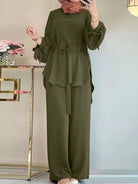 Veelzijdig en verfijnd, deze twee-delige set combineert comfort en stijl. Bestaat uit een lange tuniek en een vloeiende broek, het is geschikt voor zowel chique uitjes als dagelijkse momenten.
