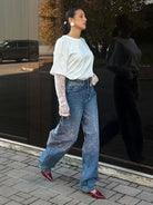 May | Modebroek – Relaxte Pasvorm en Glanzende Afwerkingen