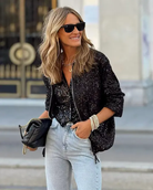 Naya | Modna Kurtka z Zippem z Brokatem