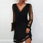 Cette robe mi-longue séduit par son col en V élégant et ses manches délicatement transparentes aux finitions raffinées. Sa coupe fluide valorise la silhouette tout en offrant un confort agréable. Idéale pour des événements ou des sorties habillées, elle conjugue style et légèreté.