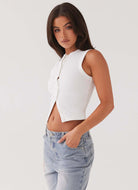 Isabelle | Top Fără Mâneci Cu Butoane – Eleganță Relaxată
