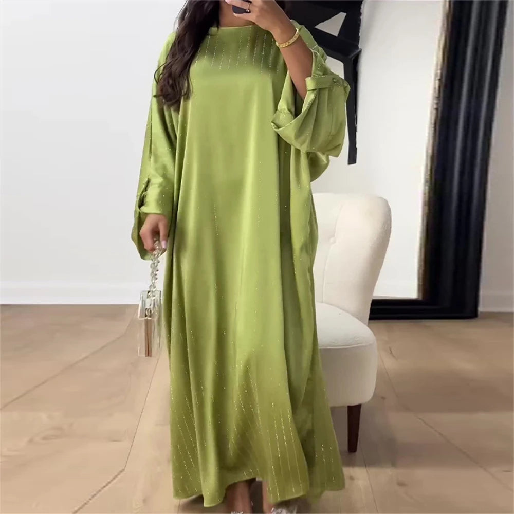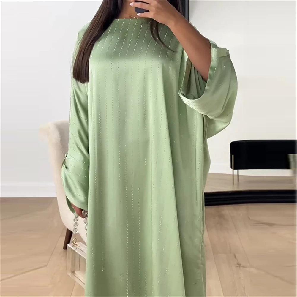 Táto večerná abaya kombinuje voľný strih s elegantným pruhovaným dizajnom. Jej široká silueta zaručuje absolútne pohodlie, zatiaľ čo jej jemné detaily diskrétne zvýrazňujú váš vzhľad.