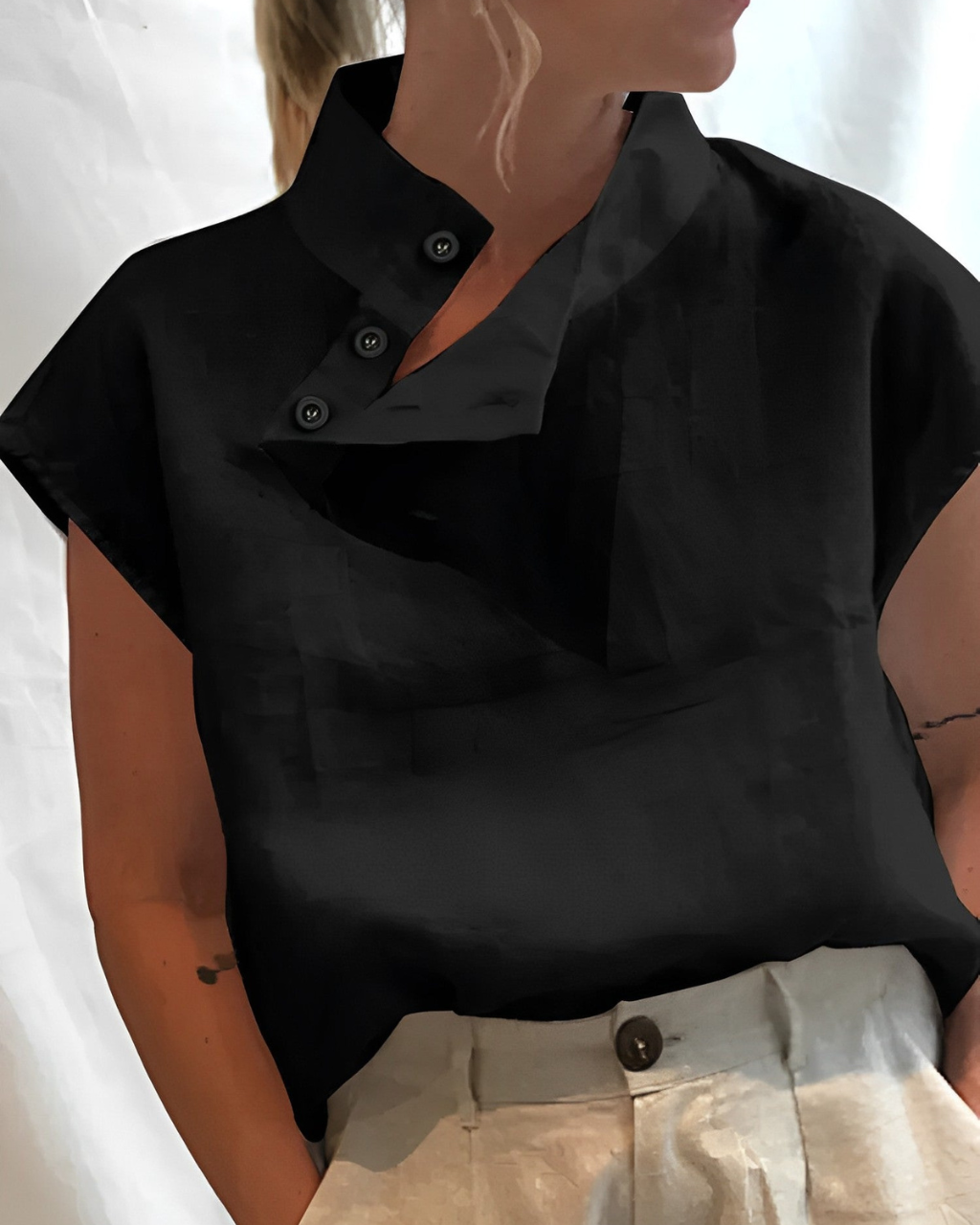 Nour | Blúzka pre ženy s krátkym rukávom a vysokým golierom