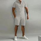 Detta set kombinerar en elegant polo med matchande shorts. Det ger en raffinerad look samtidigt som det säkerställer optimal komfort. Perfekt för varma dagar och avslappnade tillfällen.